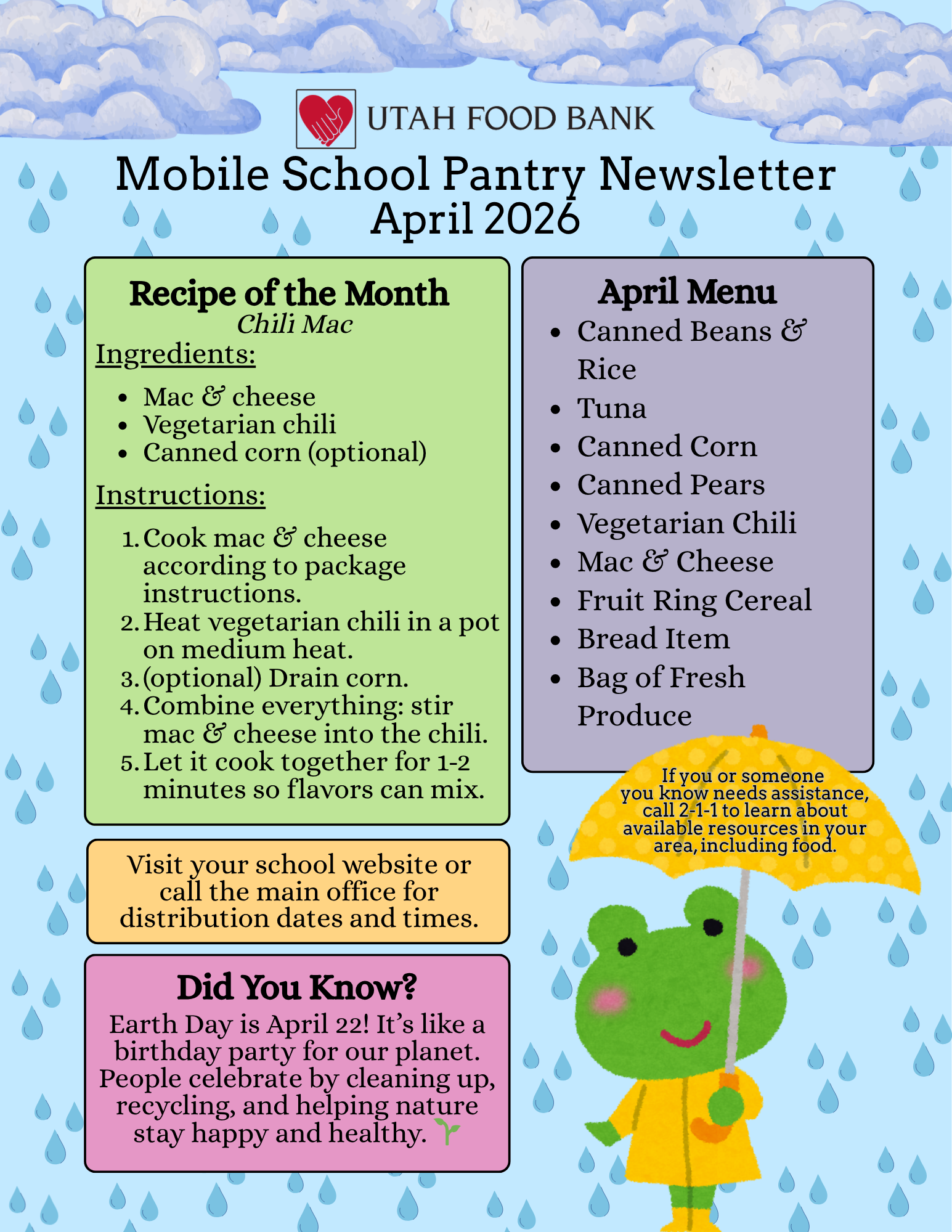 This resource is available for all Oquirrh families. Because the bags can be heavy, we invite parents to come by and help their children carry their bags home/to cars.  April Mobile School Pantry Newsletter.